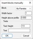 Block: Block to be inserted. The program loads this block in the blocks folder. So, if one wishes to insert one’s own block, it should have previously been copied to that folder.