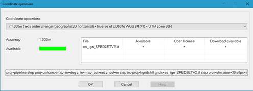 Manual selection of coordinate operations: By default, the program uses the set of coordinate operations which has the best accuracy for the calculation area. When checking this option, the program will show, in a list, all coordinate operations available to convert and/or transform from source coordinate system to target one, along with the accuracy (in meters) and the grid files (it they are using for calculation) of the coordinate operation set.
