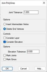 Joint Tolerance: Represents the maximum distance that may exist between the end vertices of the polylines selected.