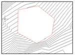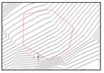A gap within contour lines can be created by means of this command. The program requests a polyline to act as border of the cut and then the it eliminates all polyline segments to be found within the border. An example of this command in use can be seen in the image below.