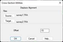 When the command is executed, the following dialog box is displayed, where one enters the Origin and Destination files, together with the Displacement to be applied in relation to the horizontal alignment.