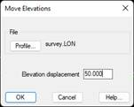 This option works in the same way. After selecting the long section file, a value to be added or subtracted from all the heights in the file is entered.
