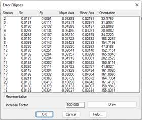 Additionally, once the calculation has been performed, one can view Error Ellipses information by clicking the button with same name.