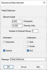 This numerical data element represents the partial distances from the long section included in the previously selected segment. The dialog box shown below is then displayed A description of its characteristics follows.