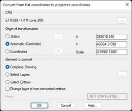 We can use this command to convert a survey of planar coordinates to projected, applying the scale factor of the chosen projection from a selected origin.