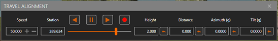 In this mode the camera moves relative to an alignment (only activated if invoked from Road Tour).