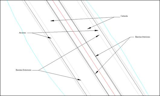 Length of the Left and Right-Hand External Bands (LBEI, LBED): It is the length of the line separating the road and the hard shoulder on the left or right of the horizontal alignment between two consecutive stations.