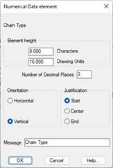 Justification: Establishes the position of the text in relation to the point of insertion. There are three possibilities: Start, Center and End.