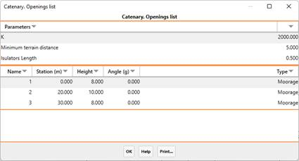 Pole data: This section enables us to define the different power line supports and posts. The Insert and Delete buttons will enable us to manage the definition of the same.