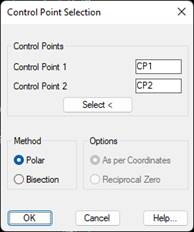 Control Points: The control point names may be entered manually, or they may be entered by clicking on the Select button to graphically select each of the control points, both the position and the reference ones.