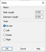 Extension Length: If texts are drawn, this value sets the mark’s extension in the direction of the text attached.