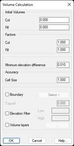 Minimum elevation difference. Minimum difference, in meters, to calculate the volume.