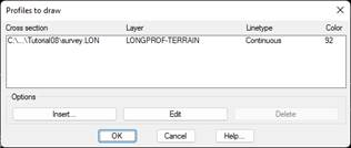 As you can see, you have the option of configuring the Layer, Line Type and representation Color of the corresponding long section.