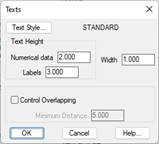 When this button is activated, the characteristics with which the numerical data texts are to be drawn can be configured. The dialog box and a description of its characteristics appear below.