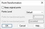 Prefix for transformed points. To avoid conflicts between existing and transformed points, a prefix should be indicated for the new points, so that the original point 1 becomes T.1, the original point 2 becomes T.2, and so on.