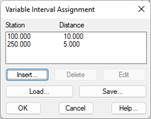 Variable: It will allow us to represent certain intervals between stations. In the next figure it will be represented every 10 meters up to station 100 and every 5 meters up to station 250.