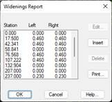 Insert and edit: These commands allow specific widenings data to be modified. When this button is activated, the following window is displayed, where the data desired may be entered.