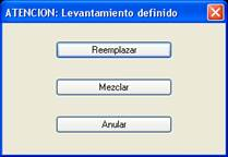 Si ya está definido un levantamiento en el dibujo actual, el programa pregunta si deseamos reemplazar los datos anteriores o deseamos mezclar ambos trabajos, con objeto de unificarlos en un solo fichero.