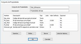 En esta ventana se puede visualizar las distintas propiedades asignadas al conjunto de propiedades, en este caso a “Pset_Alineacion”.