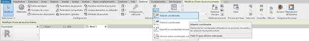 ![]() A continuación traspasamos las coordenadas del DWG al proyecto de Revit, y para ello en la pestaña Gestionar > Ubicación de proyecto > Aquirir coordenadas, nos solicita un proyecto vinculado y pinchamos sobre el dibujo: