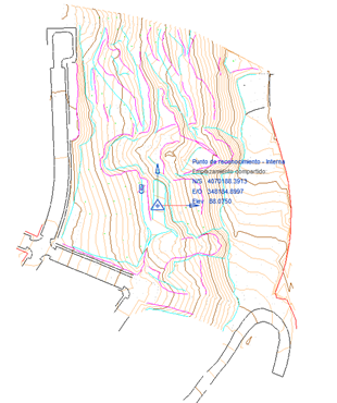 ![]() Ahora podemos ver como el dibujo y el punto de reconocimiento siguen centrados el uno con respecto al otro, pero que las coordenadas del punto de reconocimiento han cambiado a las coordenadas UTM del dibujo: