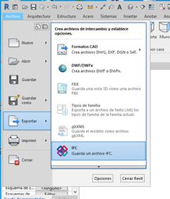 ![]() Para finalizar exportamos la superficie obtenida en Revit a IFC para ello nos vamos a la pestaña Archivo > Exportar > IFC: