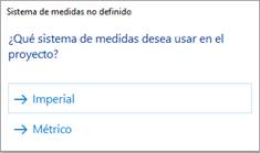 ![]() Nos pregunta por el sistema de medidas y seleccionamos métrico:
