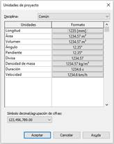 ![]() Lo primero es configurar el proyectoi en Revit en metros, para ello en la pestaña Gestionar> Configuración >Unidades del proyecto, en la propiedad de Longitud, elegimos metros: