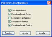 A la hora de imprimir un levantamiento, se puede elegir los elementos del listado. Las opciones disponibles pueden verse en el diálogo.
