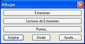 El botón Dibujar representa las estaciones, los puntos y las lecturas de estaciones del levantamiento actual, pulsando los botones correspondientes.