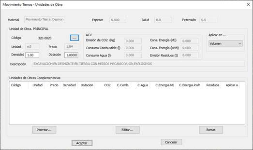 Unidades de Obra: Esta opción se habilitará en el caso de que activemos la casilla del Vol.Mov.Tierras.