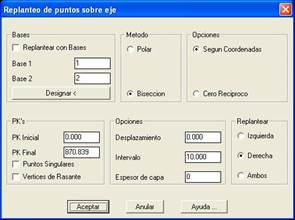Puntos Singulares: Si está habilitado, además se replantearán los puntos singulares del eje.