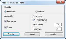 Acotación:Indicamos si deseamos rotular el PK, la cota o ambos.