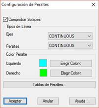 En esta ventana estableceremos todos los parámetros relacionados con la generación y dibujo de los peraltes.