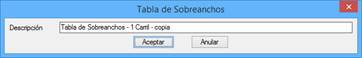 Editar: Editamos cualquiera de las tablas seleccionada. Esta opción ejecuta el comando de “ Sobreanchos > Tabla de Sobreanchos”.