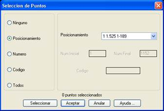 Este comando permite al usuario convertir una serie de lecturas puntos a lecturas estaciones. En primer lugar aparece un diálogo para facilitar la selección de puntos por Posicionamiento, Número o Código. También pueden seleccionarse Todos. Las estaciones se crean con las mismas coordenadas que los puntos y como nombre una "P" seguida de su número.