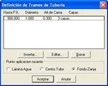 Se introducirán la configuración de la tubería por pks y los diferentes materiales entre cada intervalo. Al insertar o editar nos aparecerá la siguiente ventana donde se configurarán estos parámetros.