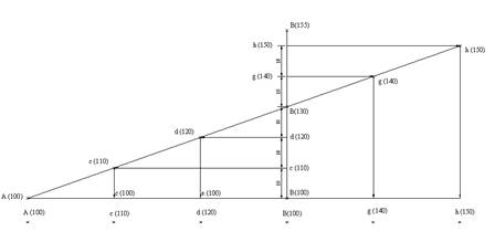 En la figura se interpolan puntos cada 10 metros de altura entre el punto inicial de referencia y la cota final especificada, en este caso 155 metros.