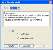 Por Parámetros: Introduciendo directamente los valores de los parámetros de las ecuaciones de transformación.