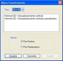 3D: Transformaciones de 3 dimensiones, que incluye traslaciones en X, Y, Z y la clásica Helmert de 7 parámetros.