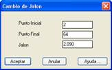 Por último, el botón Jalón de la lista de lecturas de puntos permite modificar los valores de la altura de prisma de un intervalo de puntos. Para ello simplemente se teclean el número del Punto Inicial y el Punto Final, y el nuevo valor del Jalón para ser asignado.