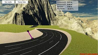 Dentro de las opciones de este modo está el botón Ver malla, que permite ver el modelo alámbrico del terreno, y el botón Tomar foto, que permite hacer una captura de pantalla y guardarla con el nombre que elijamos.