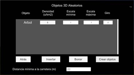 Distancia mínima a la carretera, cuando en el terreno existe carretera, se contempla que los objetos 3D no caigan sobre dicha carretera, sino como mínimo a la distancia establecida