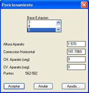 Cada posicionamiento se define por su nombre de estación y su altura de aparato. Pueden existir por tanto varios posicionamientos con la misma estación pero diferentes alturas de aparato.