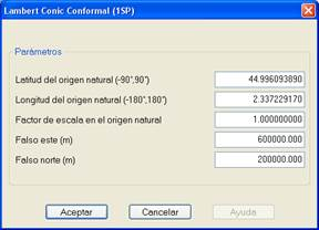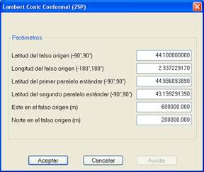 Al pulsar el botón Parámetros de Proyección, dependiendo del tipo seleccionado, se solicitarán los siguientes datos: