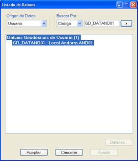 Datum: Se debe seleccionar del listado que se muestra al pulsar el botón