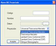 Proyección: Tipo de proyección del SRC. Las proyecciones soportadas son: