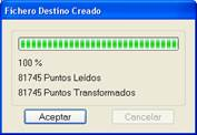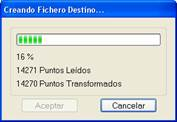 Una vez establecidos todos los datos, al pulsar el botón Transformar, se muestra una ventana que presenta el número de puntos leídos y transformados en cada momento.