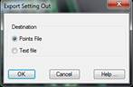 Points file: All the coordinates of all the points on the list are exported to a points file. When the dialog box is validated, the Export Points command is automatically executed. For further details, see the Surveying Points section.
