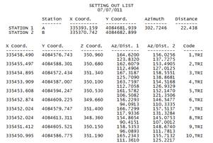 When this option is selected, the data on the list are sent to the printer selected. Information about the stations used is also shown. An example of a printed list in high resolution mode can be seen below.